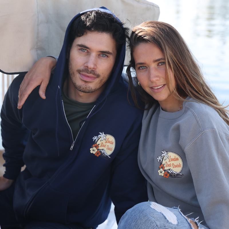 Tropical Palm Navy Zip Up Hoodie Sweatshirt