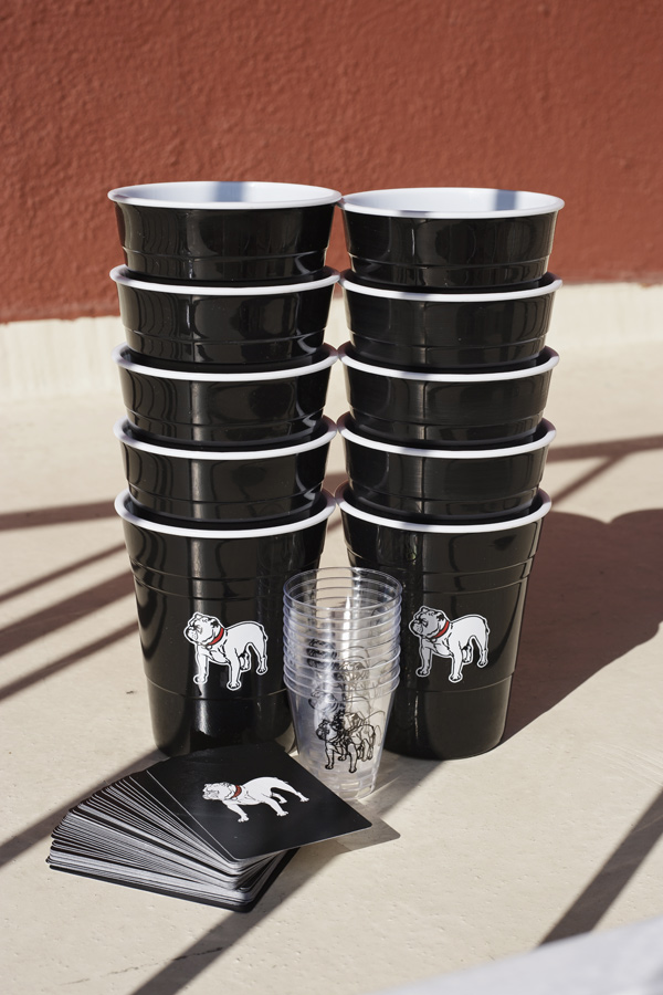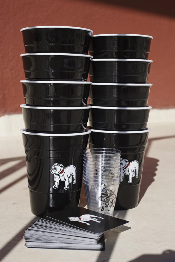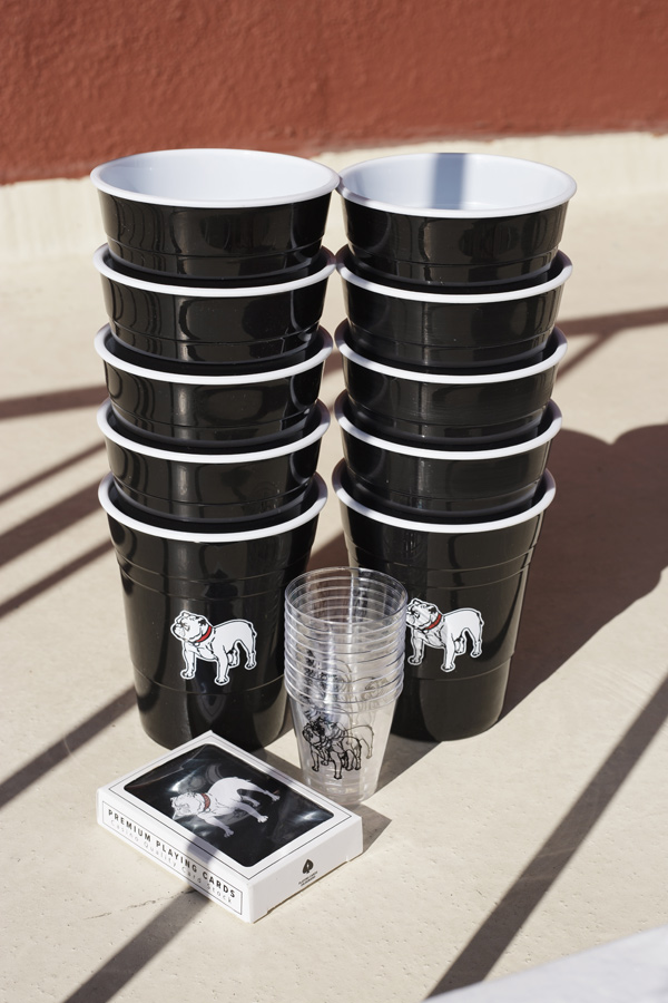 10 Solo Cups, 12 Shot Glasses (plastic), Playing Cards.